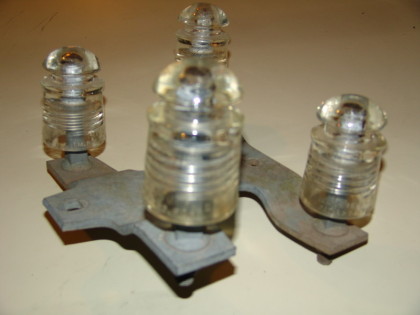 The two DP insulators on the far right and left, fell out of favor because their shallow groove could not properly secure larger conductor sizes. Middle insulator was Pony style used for point type transpositioning and deadends (for single pin use).