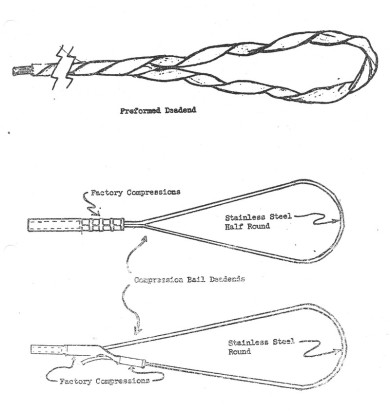 The types of ties were as simple as the standard “Western Union Horseshoe” to elaborate styles which incorporated pig tails and multiple wraps such as at double crossarm angles and pin-type crossarm or bracket dead-end arrangements.