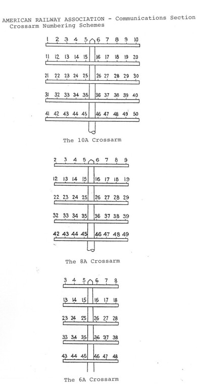 Railways, like their counterparts in the civilian telecommunications field, may have designed and constructed aerial wire plant which appeared at first glance to be identical, but often differed markedly not only between American Railway Association (now the Association of American Railroads) and Bell, for example, but also differed between competing railroad corporations.