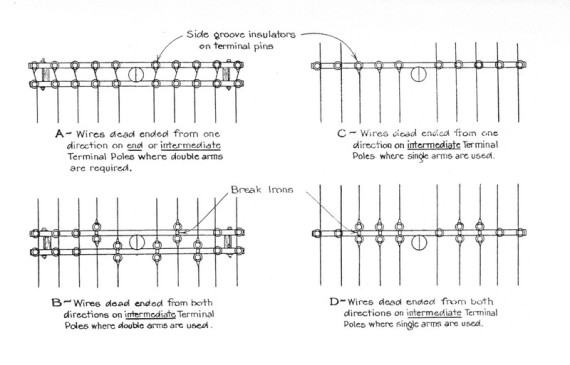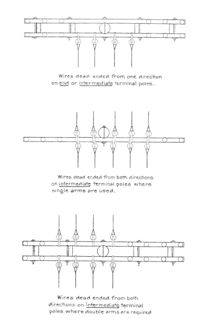 This was the general consensus of American Railway Association Communications Section leadership on dead-ending line wire. Circa 1924.