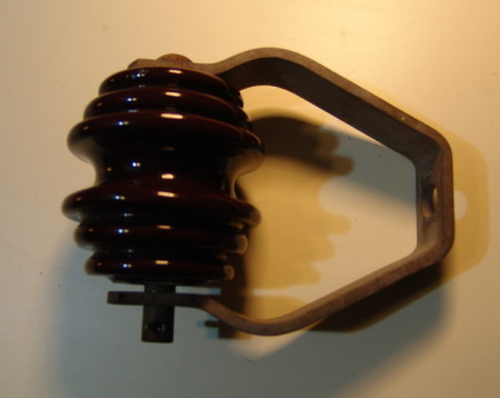 Joslyn over-arm brown porcelain insulated clevis.