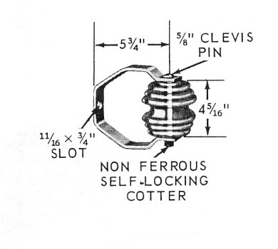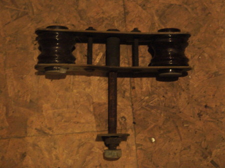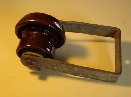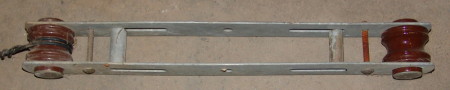 Spool type dead-end (extended) for double arm dead-ends. From Union Pacific Raiload system, c. 1940s. Spools were secured by the bolts and would not spin as in other clevis units.