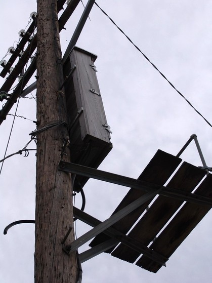 One noteworthy thing about railroad facilities–no matter where they would be found in the United States–was everything was overbuilt. While cities would use lightweight steel or aluminum poles for traffic signals, street lighting standards and fire/police call boxes, the railroads used monumentally rigid iron supports, signal mountings, brackets and other “survive the apocalypse” materials. Even terminal boxes mounted on poles and crossarms were noteworthy for their survivability as iron. Insects, too, found them inviting.