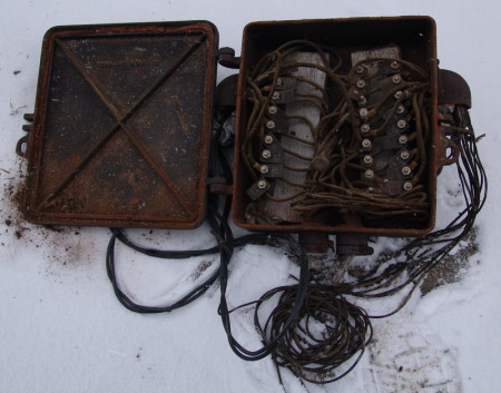 Terminals, too, were very different. While the Bell and other Independents, disavowed use of wooden crossconnect and other terminal boxes, after the 1920s and resorted to steel and aluminum lightweight materials, the railroads maintained use of large overbuilt wooden and then incredibly heavy IRON terminal enclosures.