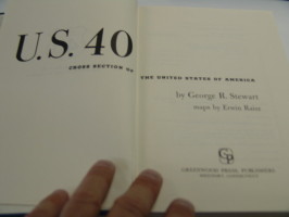 “‘Ladies and gentlemen!’to borrow a formula from the conductor of the sightseeing tour–“You are now about to pass along U. S. 40,” Professor Stewart announces at the start of his geographic itinerary.  He continues,”This is a book about that road–in part a history of how it has come to be what it is now is, but more a presentation, with the aid of photographs, of its existing reality.”