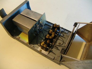 Internal view of the unit illustrating inductors and capacitors.
