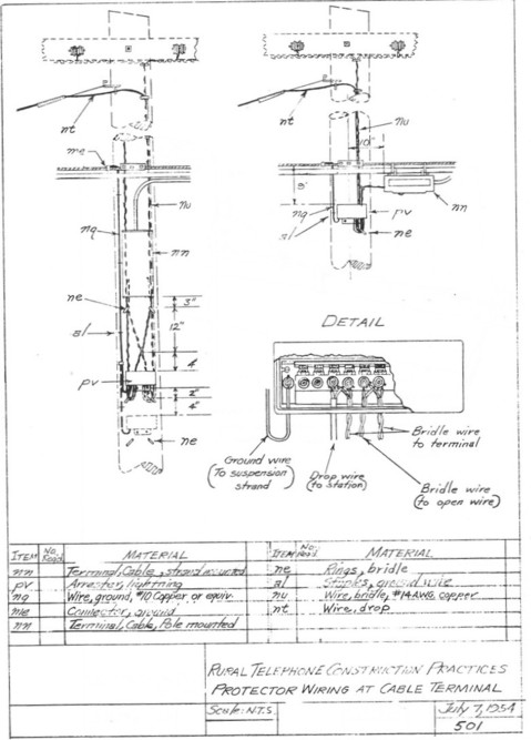 In the application of a 116 Type Protector (or similar REA-acceptable apparatus), the problem isn’t man–it is nature. It is vital that lightning exposed above ground openwire lines don’t carry high voltages down to both aerial and buried cables and damaging them. Indeed, these protectors are vital when you have a meeting of openwire to cable, multiple burred wire or subscriber drops.