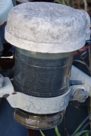 Westinghouse Autovalve 151-500-volt lighting arrester, 1930-1940s. Top view. Taken from Cottonwood Falls, Kansas Santa-Fe Railroad installation.