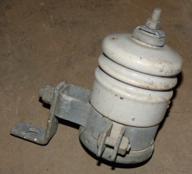 Joslyn Manufacturing & Supply 3-kV valve type lightning arrester with mounting bracket, c. post 1966. Primary terminal at top and ground at bottom.