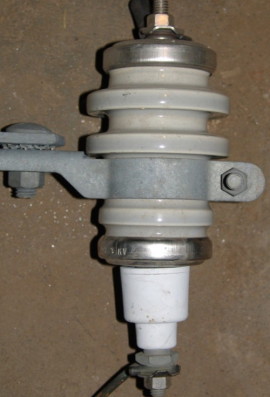 3-kV General Electric 1950s version of a dual gapped arrester. However, this unit had both an initial external air gap and a valve-action combined to arrest surge voltages.