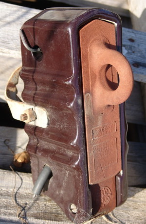 Early rural 1900-1910 Kellogg Magneto wall phone set. These were protected on farmer mutual open wire lines by the station protector shown below.