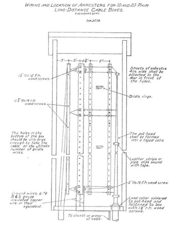 Wiring diagram for long-distance distributing boxes with room for lightning protection.
