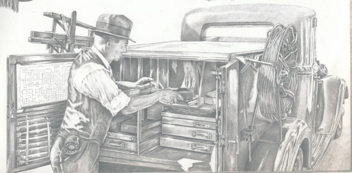 Drawing by D. G. Schema of 1930s Installer’s Truck used by many telephone companies.